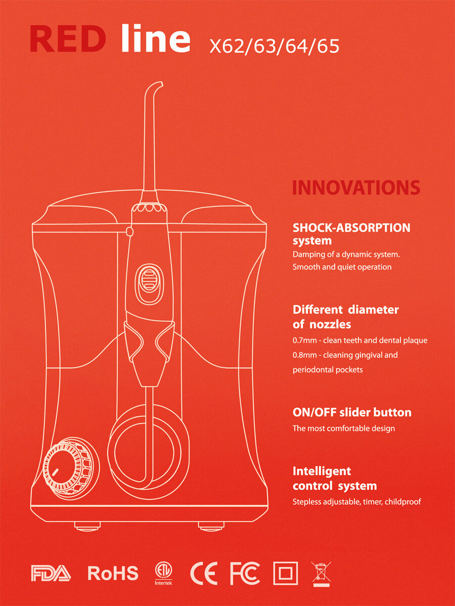 Іригатор ротової порожнини ProZone X62 Start розроблявся групою стоматологів з Чикаго. Корпус має стандартне виконання, це надійна перевірена часом конструкція, до таких іригатором звикли користувачі.