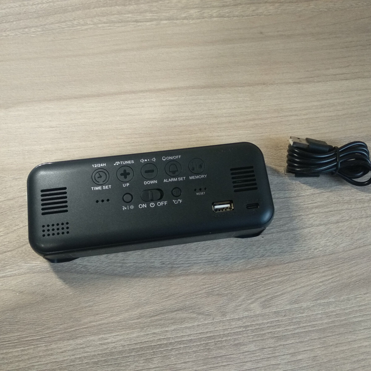 Комплектація: 1 х будильник, 1 х USB кабель.