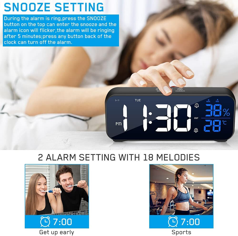Якісний годинник з LED дисплеєм, вбудованим акумулятором на 1200 mA, поліфонічними мелодіями.